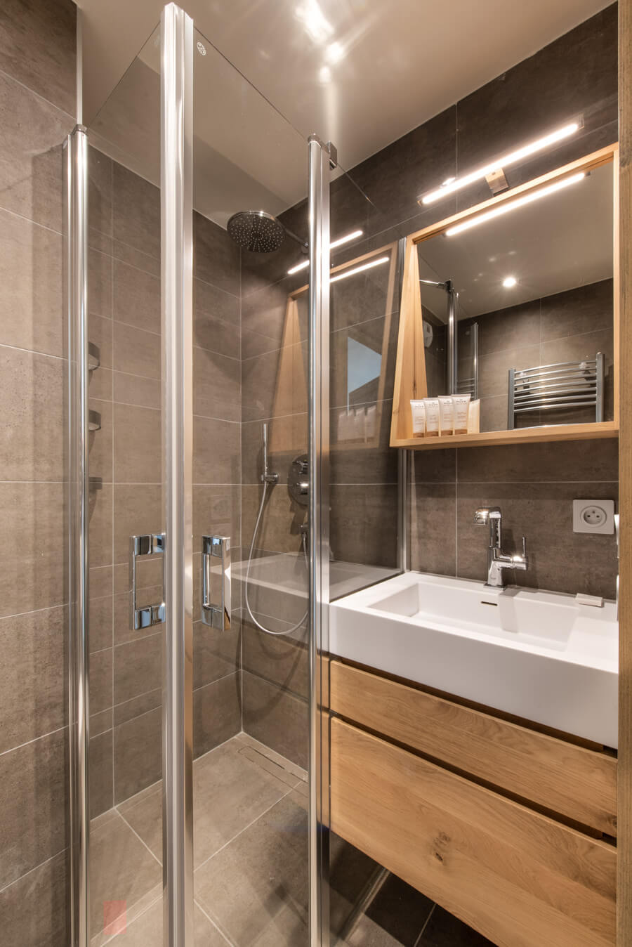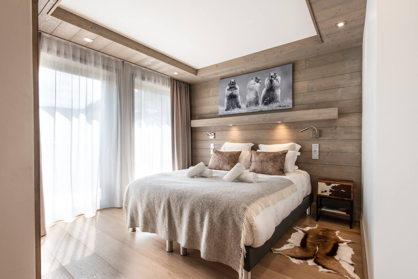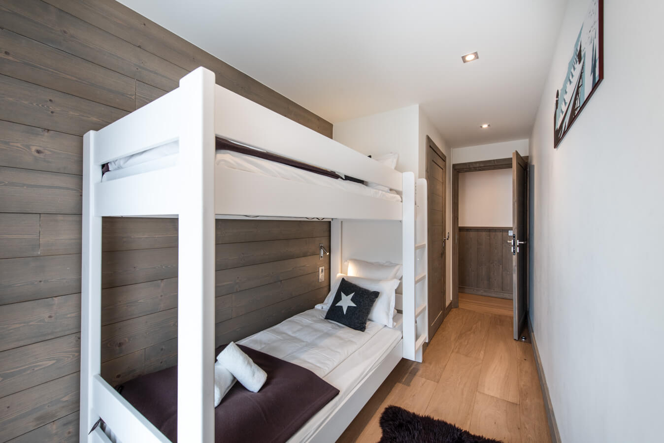 Diese Wohnung verfügt über drei Schlafzimmer mit einem Doppelbett (180 × 200 cm), ein Kabinenschlafzimmer mit Etagenbett sowie über drei Badezimmer. Der Wohnbereich bietet eine Sitzecke mit Fernseher und eine voll ausgestattete offene Küche. Zwei Balkone ergänzen den Wohnraum. Zur Ausstattung der Wohnung gehören Haushaltsgeräte wie eine Waschmaschine, ein Geschirrspüler, eine Nespresso-Kaffeemaschine, die notwendigen Küchenutensilien usw.