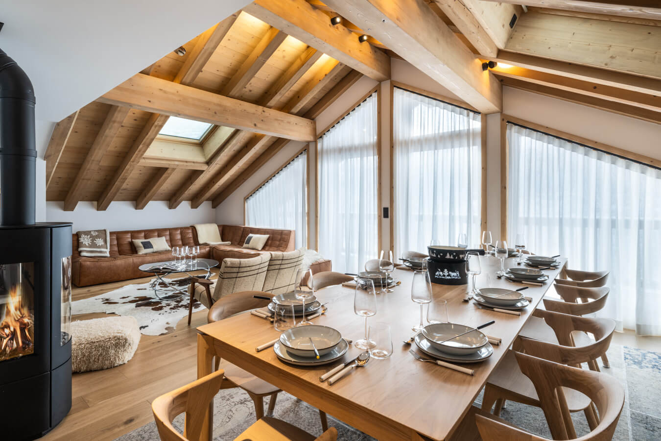 Dieses Chalet-Apartment verfügt über drei Schlafzimmer mit Doppelbett (190 × 210 cm & 180 × 210 cm) sowie über zwei Badezimmer mit Dusche und Badewanne. Der Wohnbereich bietet eine Sitzecke mit Fernseher, eine voll ausgestattete Küche, einen Holzofen und einen nach Südwesten ausgerichteten Balkon mit freiem Blick auf den Berg Sorebois. Das Chalet ist nach allen Himmelsrichtungen ausgerichtet, sodass Licht und Aussicht sich im Laufe des Tages ständig ändern. Zur Ausstattung gehören Haushaltsgeräte wie Waschmaschine, Geschirrspüler, Nespresso-Kaffeemaschine, notwendige Küchenutensilien usw.