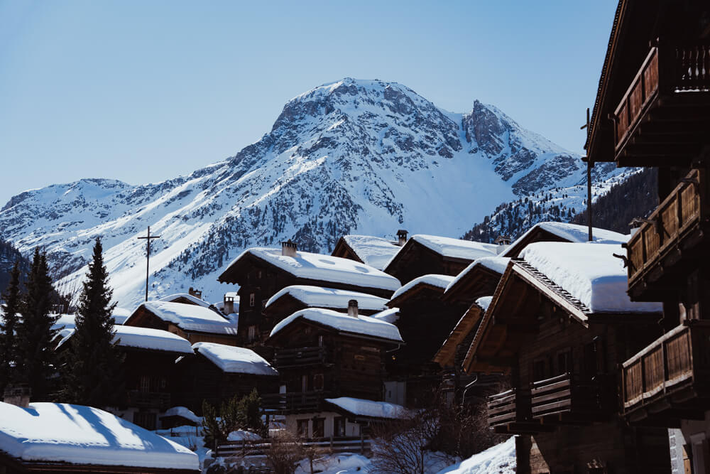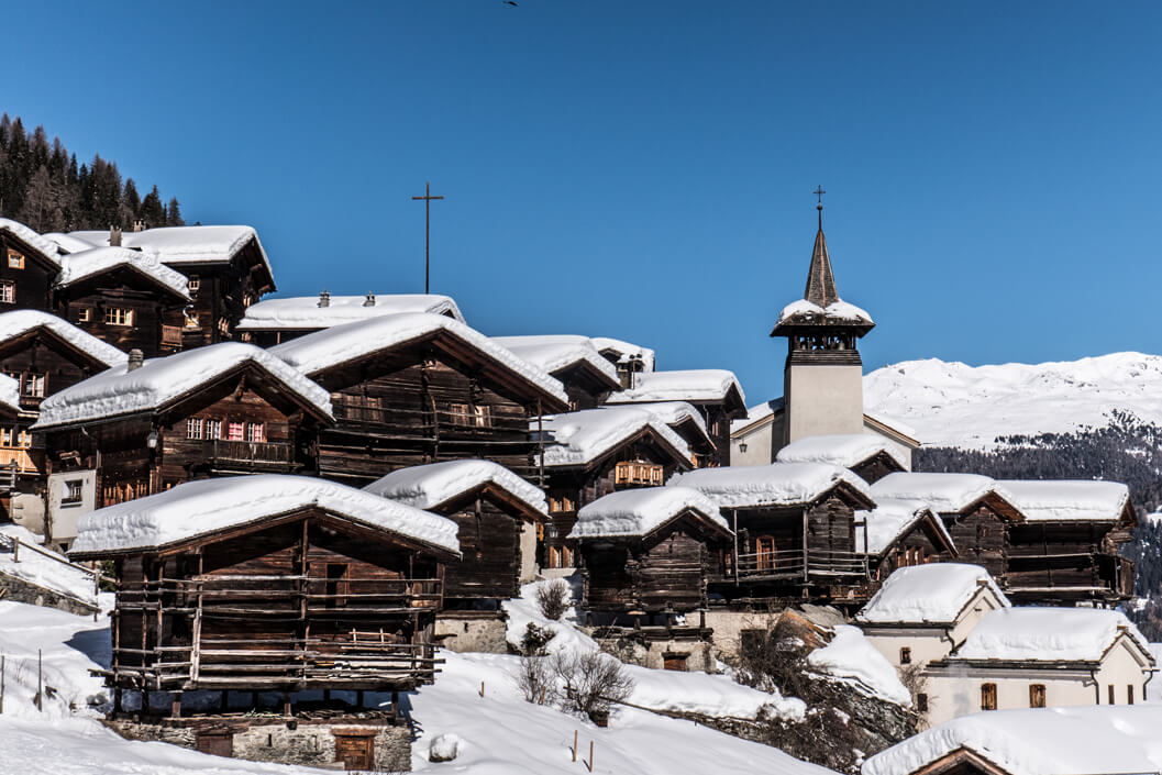Im Herzen des Val d'Anniviers offenbart Grimentz im Winter den ganzen Reichtum seines alpinen Kulturerbes. Die zwischen Himmel und Bergen gelegenen Scheunen, Heuböden und Maiensässe erzählen vom rustikalen Leben vergangener Zeiten, das von den Jahreszeiten, der Landwirtschaft und dem Wissen der Vorfahren geprägt war. Jedes Gebäude aus Lärchenholz, jeder sonnengetrocknete Stein zeugt von einem Einfallsreichtum, der sich an der Natur orientiert. Im Winter finden in den belebten Gassen lokale Feste, Handwerksausstellungen und Besichtigungen von Kulturerbestätten statt, wodurch die lebendigen Traditionen des Tals fortgeführt werden. In Grimentz treffen Vergangenheit und Gegenwart in einer geschützten Berglandschaft aufeinander und bieten ein sinnliches und unverfälschtes Erlebnis.